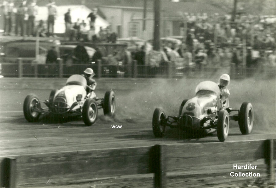 Wally in the Frank Curtis Offy #8 leads Ernie McCoy.