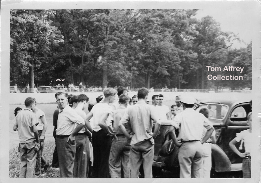 Gathered around the #71 of Harvey MacDonald on the backstretch.