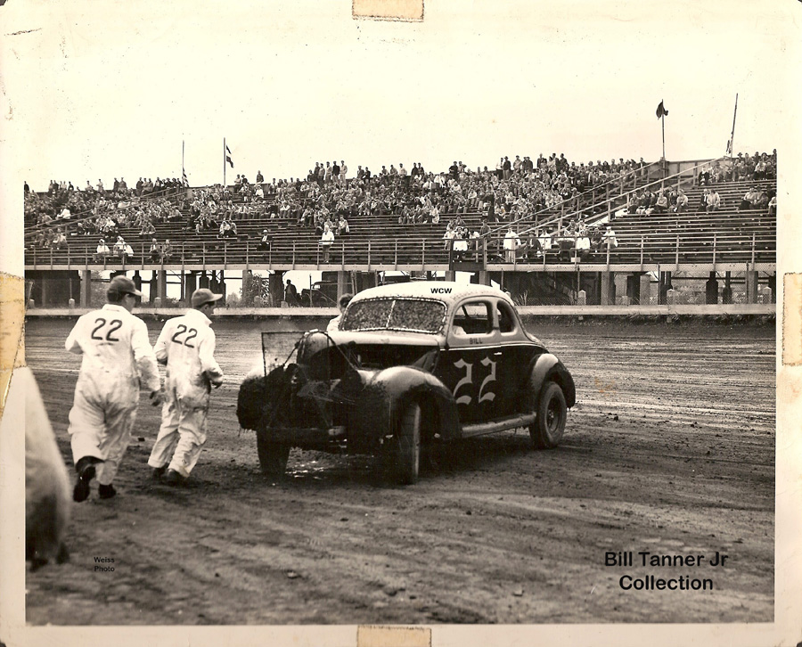 Crewman Jim Miller and Bruce Reeder rush to aid Bill Tanner Jr in the Reeder's Garage #22.