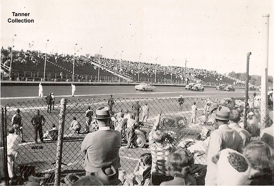 The "Big Fire" race. Wally Campbell in the Wally Marks #1 and Bill Tanner Jr in the Walt Siwak #6 bring them down for the parade lap.