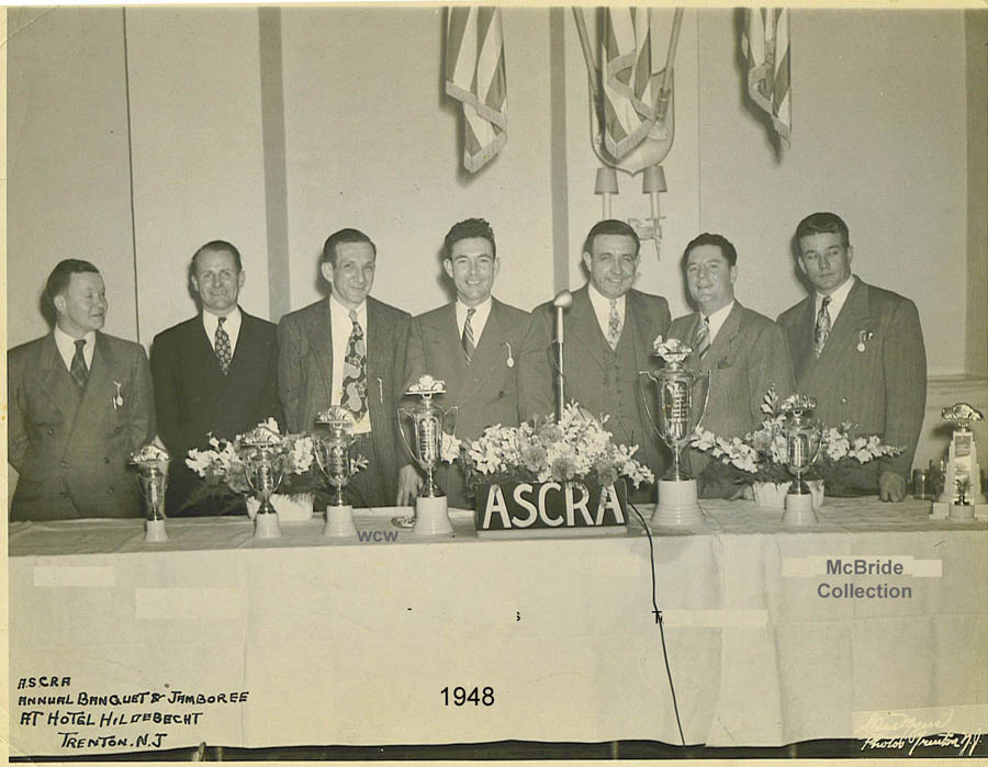 From the left: Joe Wolf, Wally Marks, Leon McBride, Tommy Coates, Harold Brokhoff, Tommy Bradshaw, and Pepper Cunningham.