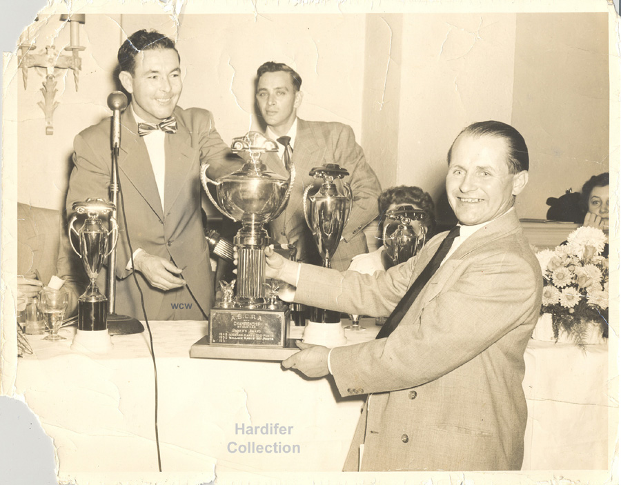 Wally Marks receiving the 1st place owners trophy from Tommy Coates.